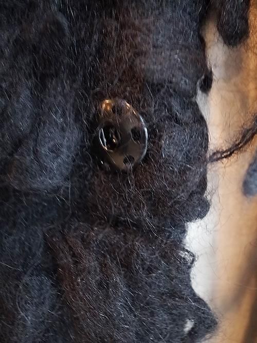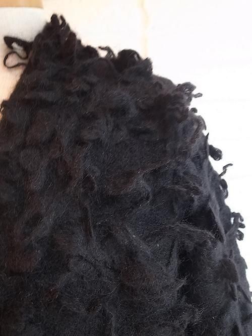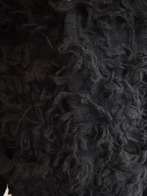 3ゲージの毛足の長い毛糸でパイル状に編んであり、