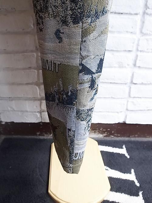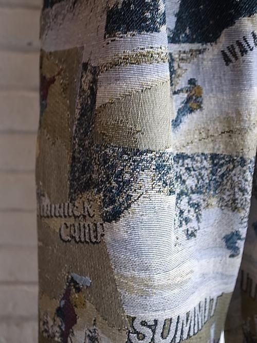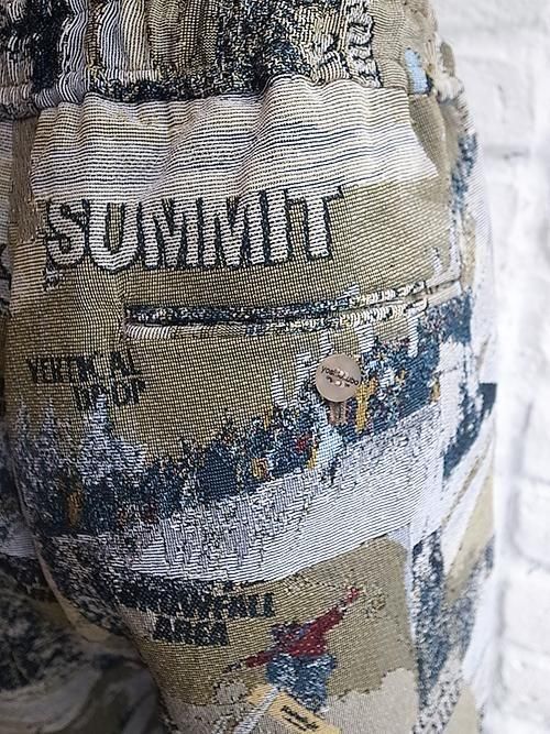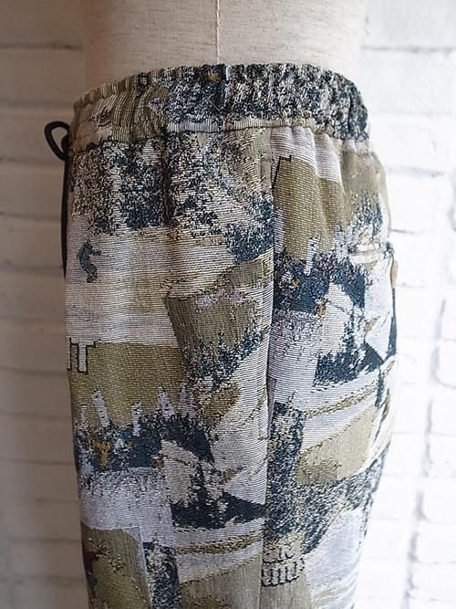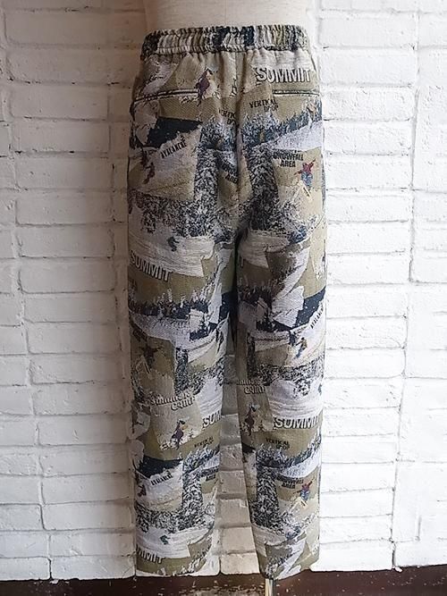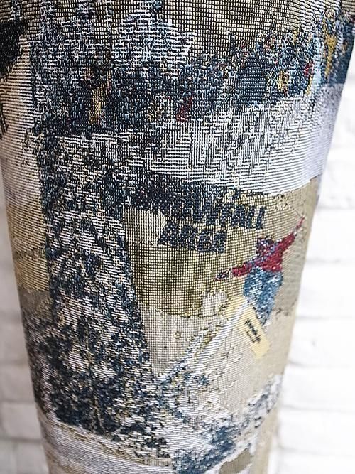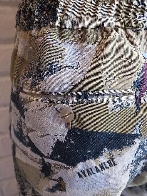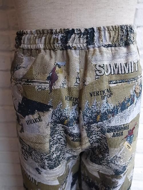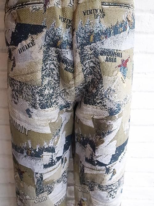 スノーボードシーンをゴブラン織りで表現したタックパンツ。