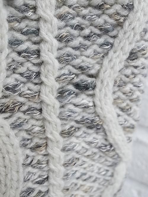 ケーブル編み部分を単色糸にすることで全体に締まり、