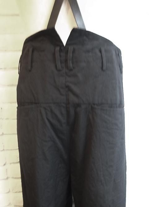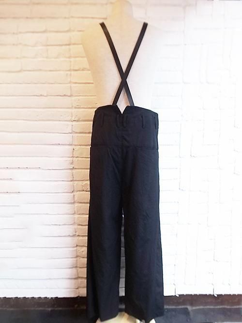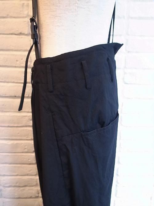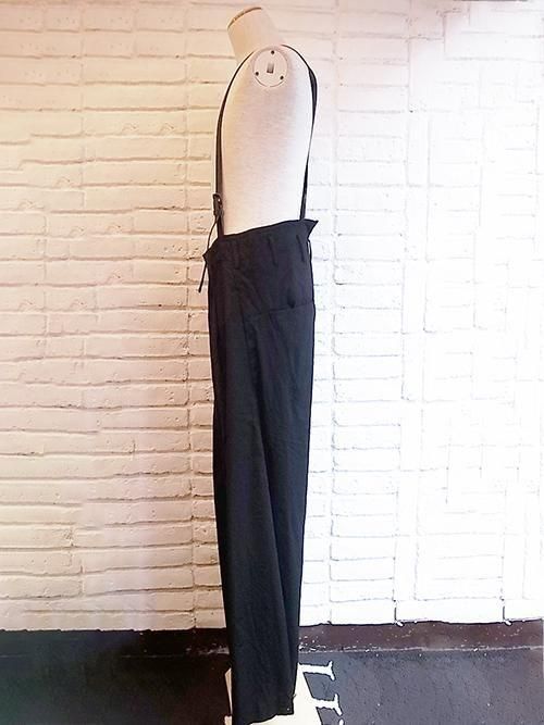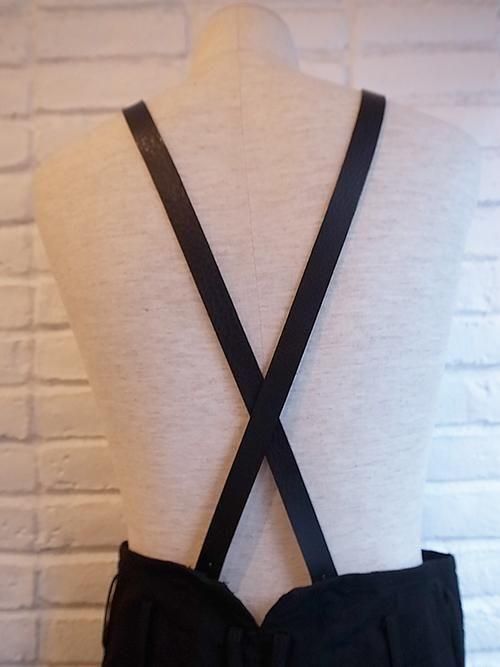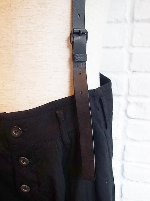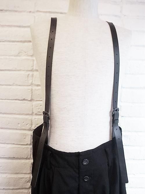【nude:masahiko maruyama】Wool Cotton Twill WIDE LEG PANTS WITH LEATHER SUSPENDER (BLACK)