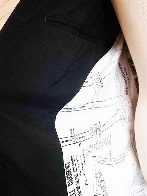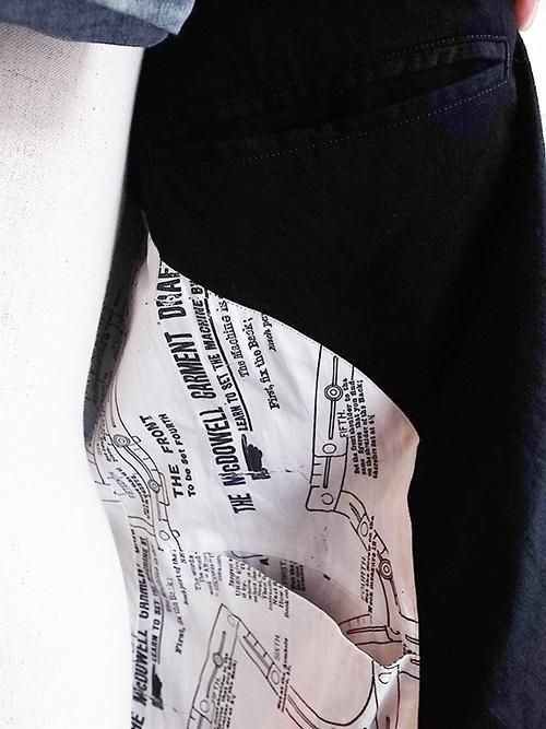 裏地には製図機をプリントしたオリジナルの素材を、