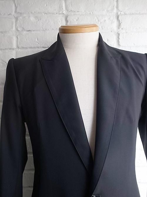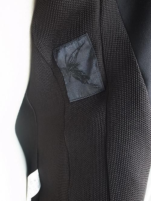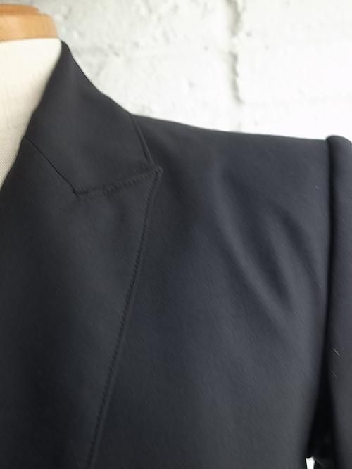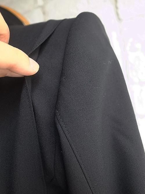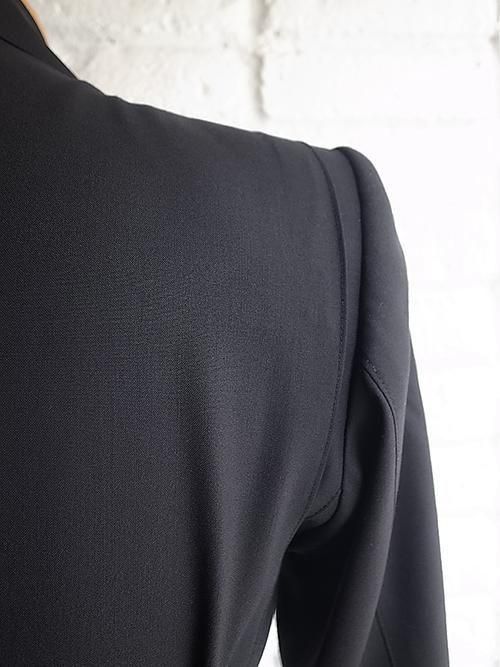 肩パットがしっかりと入っており、シルエットを維持するためのゴムコードが背中に