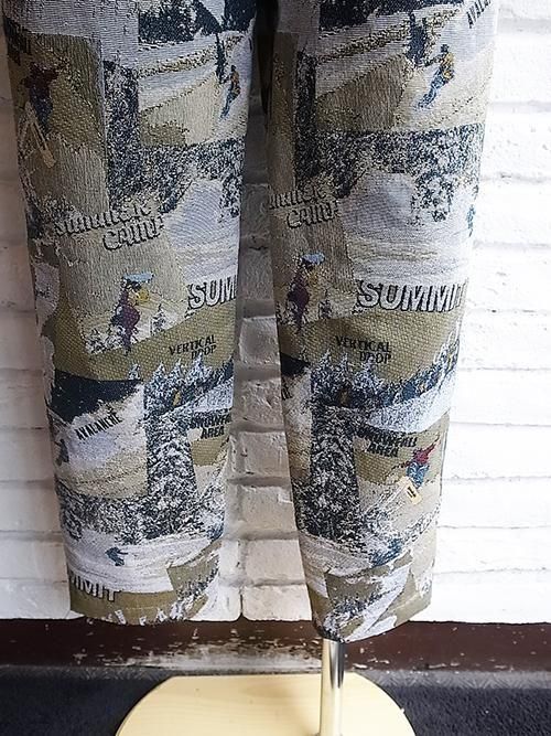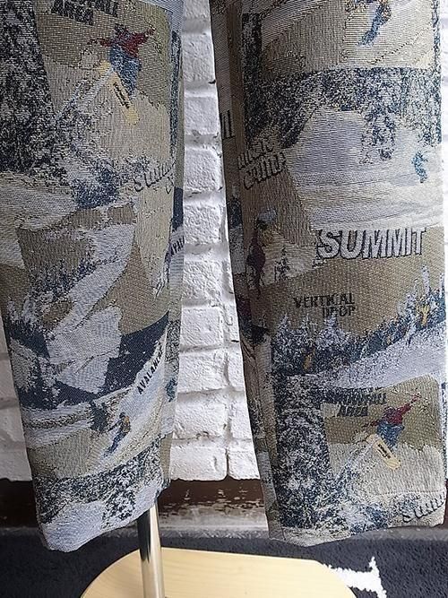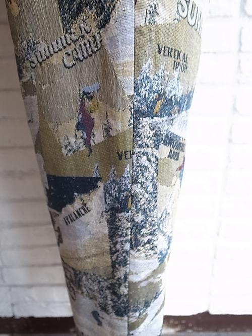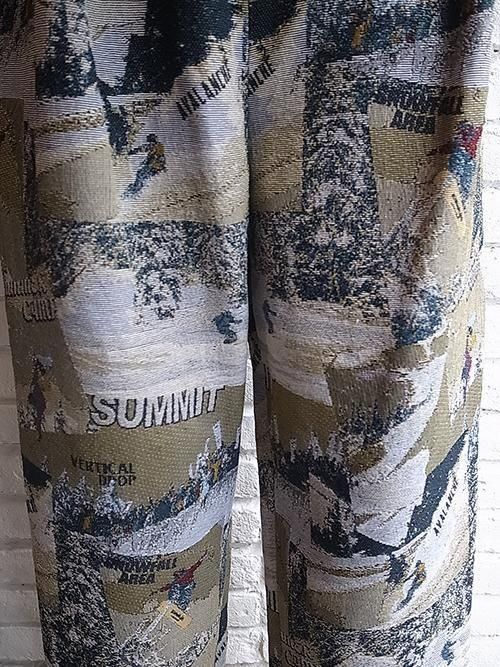 スノーボードシーンをゴブラン織りで表現したタックパンツ。