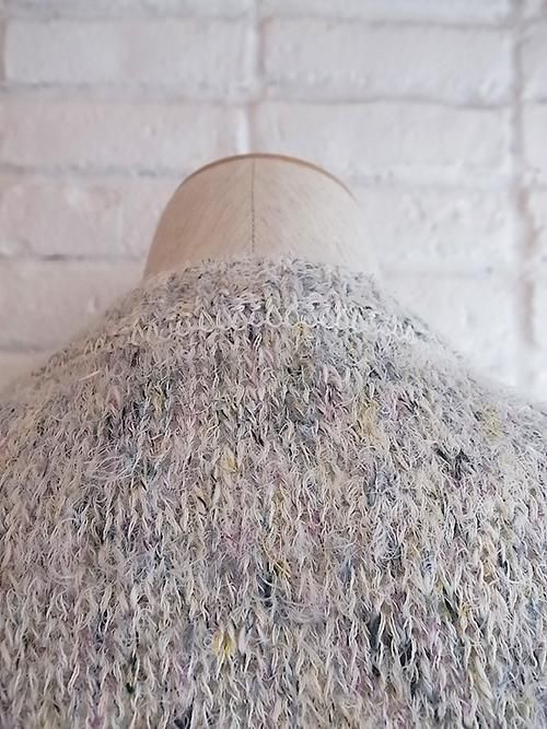 身頃を天竺編み、袖をタック編みでメッシュで組織を切り替えた