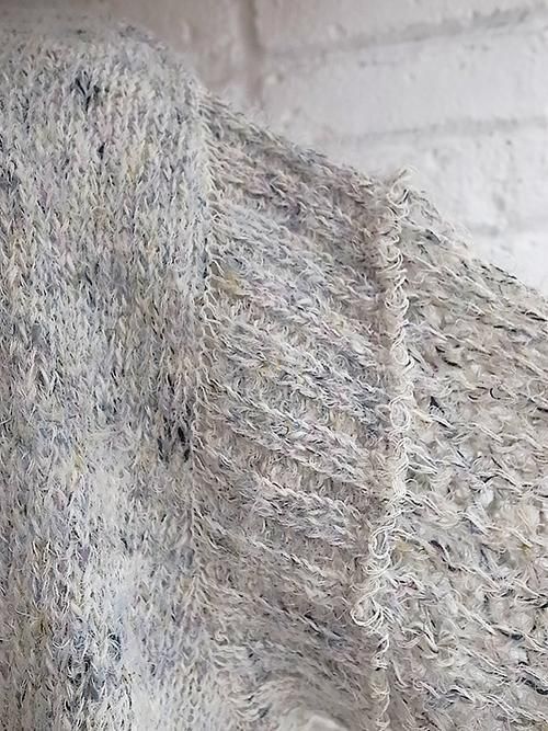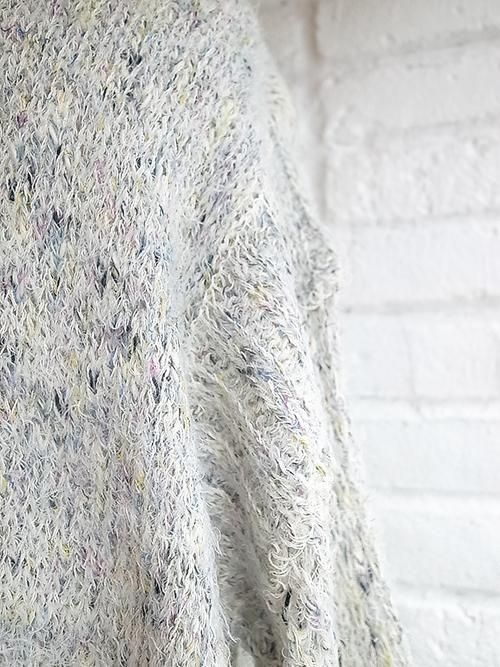 撚り合わせ、さらに絣染めのカラフルな糸を引き揃えたオリジナル素材を使用。