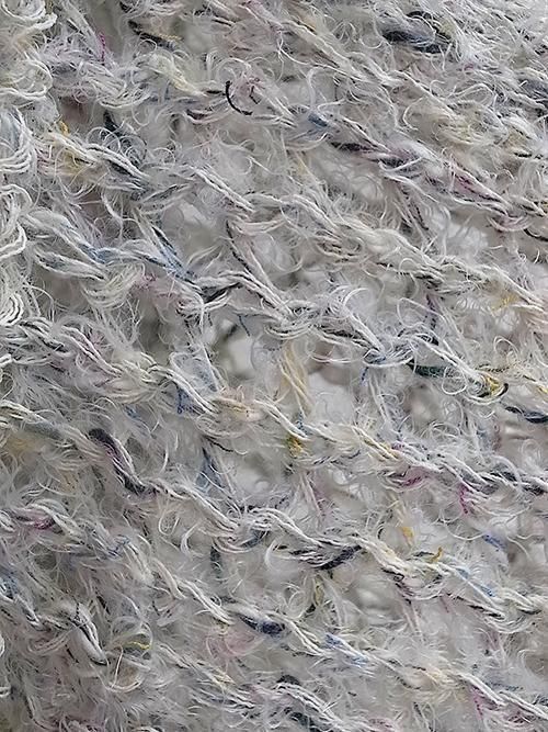 糸には毛足の長いフェザー糸とカール(ひげ)糸、スラブ糸の3種類の糸を